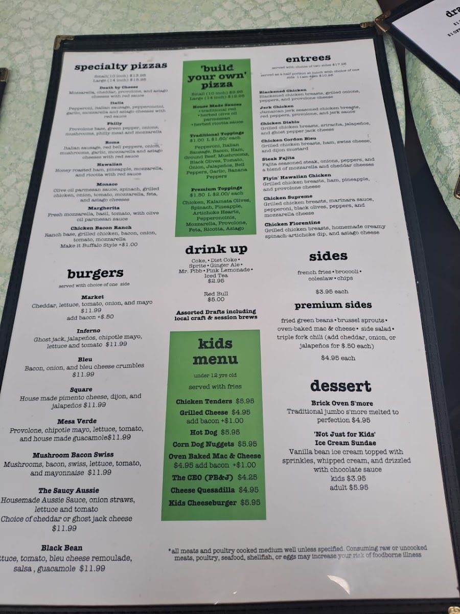 Brown Sugar BBQ base, mozzarella, blackened chicken, pickled jalapenos, bacon, and a sriracha drizzle