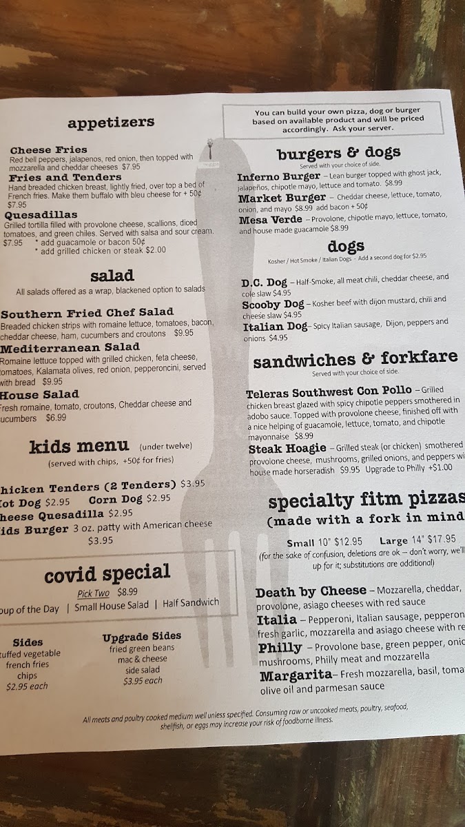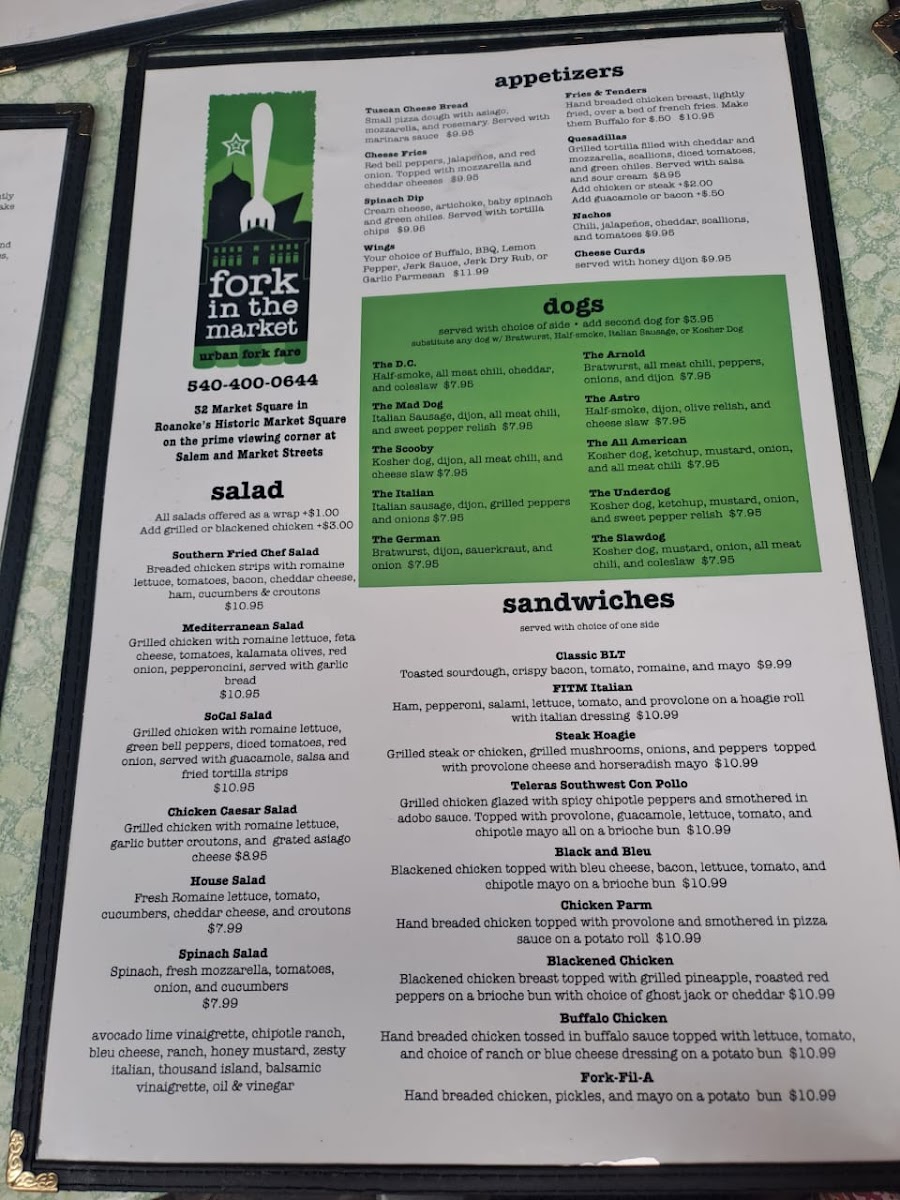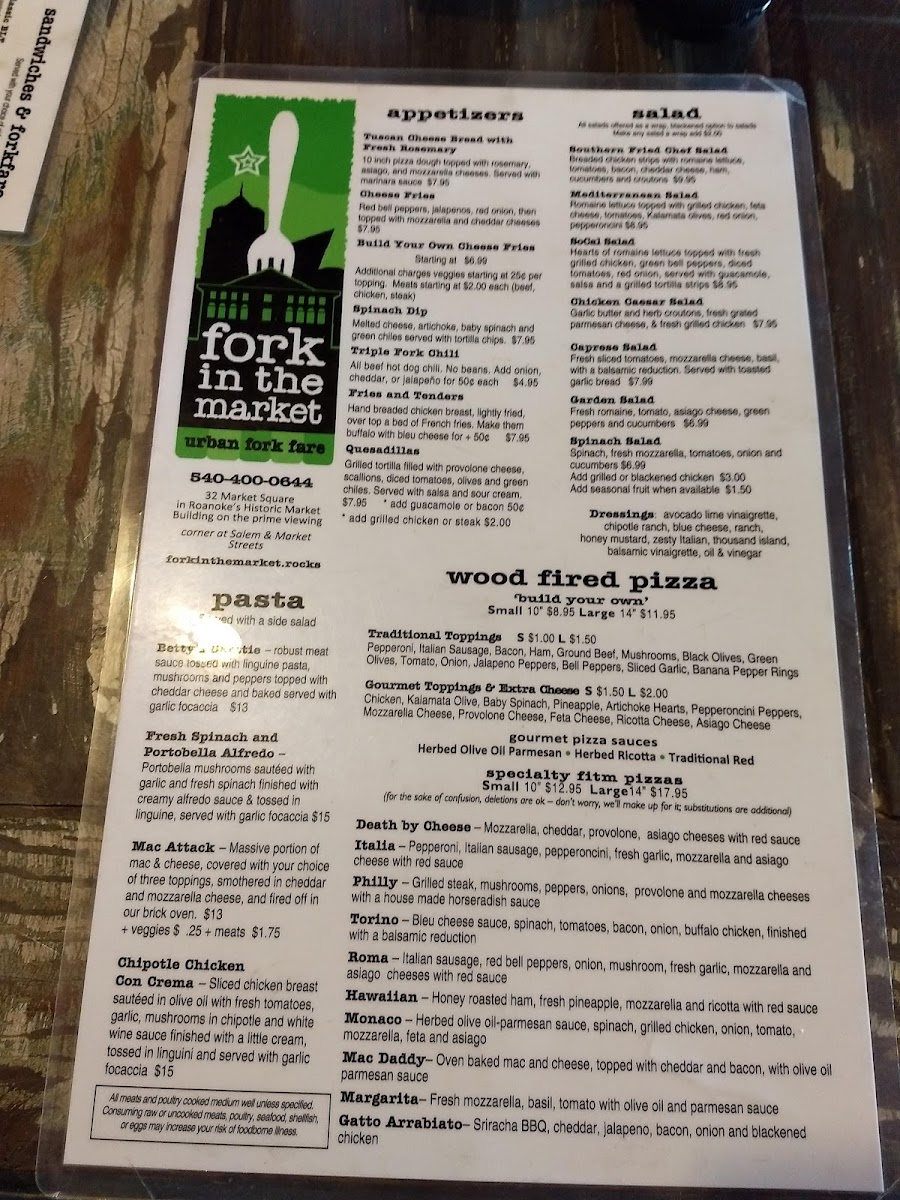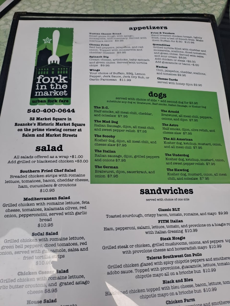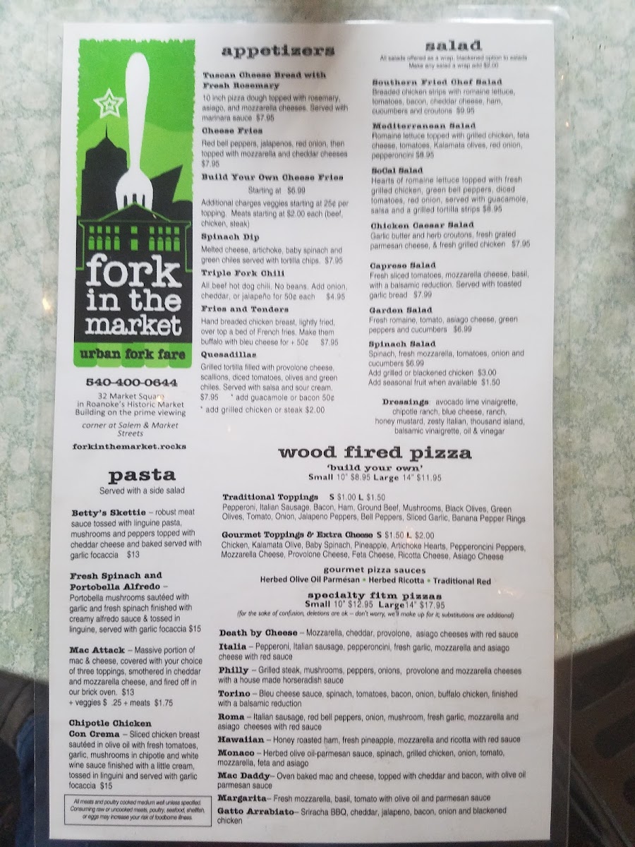 Welcome to the Fork In The Market Menu, a delightful fusion of local ingredients and vibrant flavors nestled in the heart of Roanoke. With a warm, inviting atmosphere, this restaurant offers a fresh take on comfort food with a twist. Each dish is thoughtfully prepared to highlight seasonal ingredients, bringing out the best in both classic and contemporary flavors. Whether you're craving a hearty meal or something light and refreshing, the menu at Fork In The Market has something for every taste. From savory small plates to satisfying mains, each bite is designed to delight. Take a seat, enjoy the cozy surroundings, and let the flavors of Roanoke unfold on your plate.
